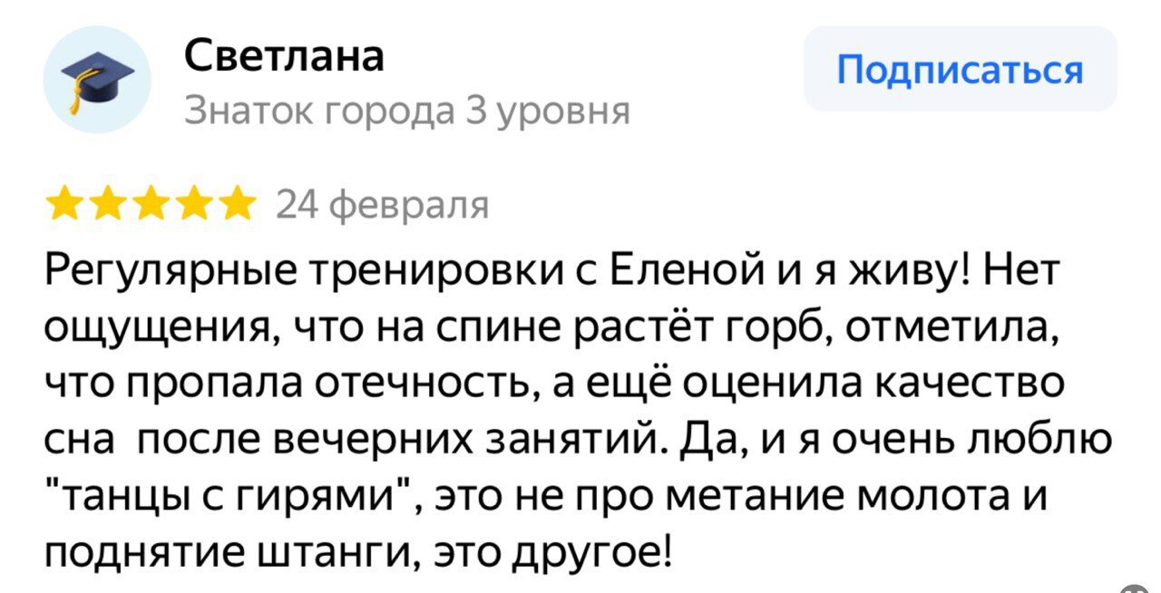 Мы придерживаемся индивидуального подхода, поэтому предлагаем особые условия - персональные тренировки, фитнес после родов, занятия для пожилых, семейный и корпоративный фитнес - чтобы вы приходили к нам с радостью и всегда добивались нужного результата. Свой тренер - самый правильный выбор для этого! Такой специалист в текущий момент корректирует недочёты в каждом упражнении: его внимание ничто не отвлекает! Бесценный бонус - возможность подстраивать план занятий с учётом ваших успехов.